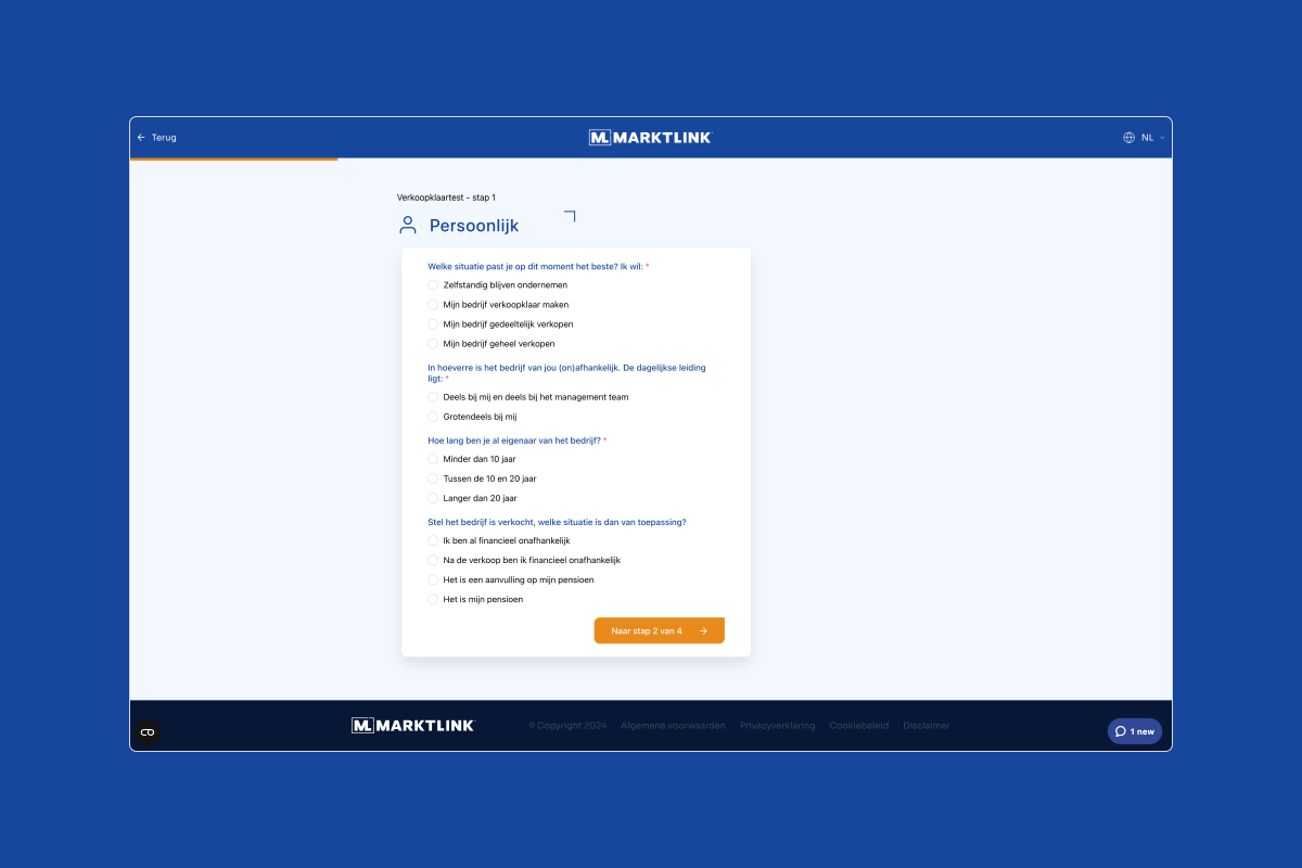 - Maatwerk Tools: Speciaal ontwikkelde tools stellen bezoekers in staat om eenvoudig de waarde van hun bedrijf te berekenen of de verkoopgereedheid ervan te beoordelen. Deze maatwerkfunctionaliteiten voegen een interactief en waardevol element toe aan de website, waardoor bezoekers direct betrokken raken bij de diensten van Marktlink.